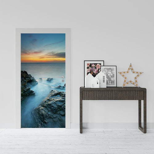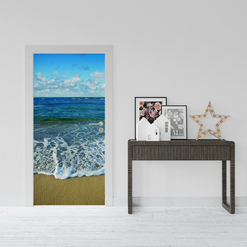 Sky Sandy Beach Wavy Seas & Oceans Door Wrap, Customized Mural For Door, Door Mural Sticker, Peel And Stick Door Cover, Removable Door Decal