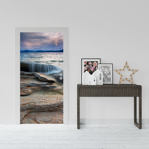 Rock Waterfall Beach Wave Door Wrap, Customized Mural For Door, Door Mural Sticker, Peel And Stick Door Cover, Removable Door Decal