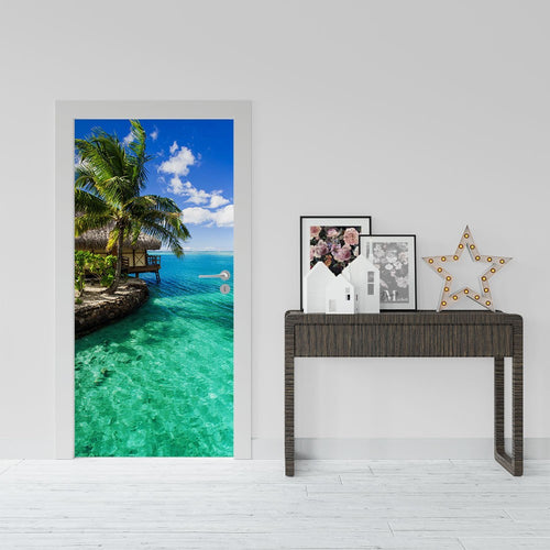 Resort Villa Beach Palm Tree Door Wrap, Customized Mural For Door, Door Mural Sticker, Peel And Stick Door Cover, Removable Door Decal