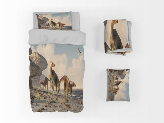 Dinosaurs Beach Duvet Cover Set W Pillow Cover, Brown Kids Dinosaurs 3D Quilt Cover, Single Double Queen King Size Doona Cover