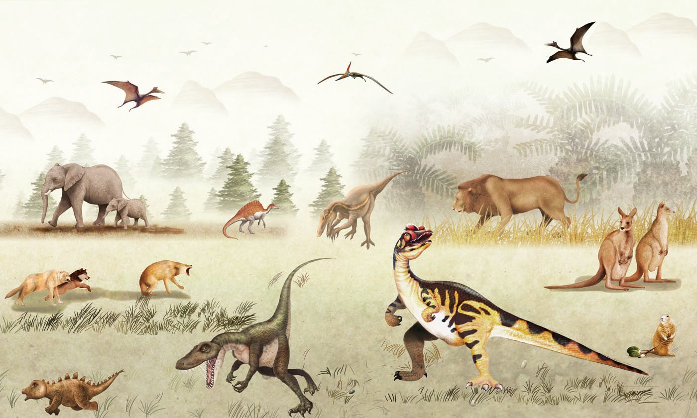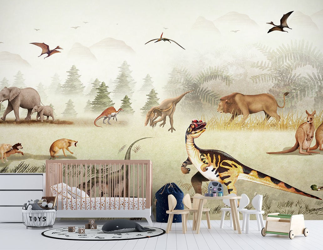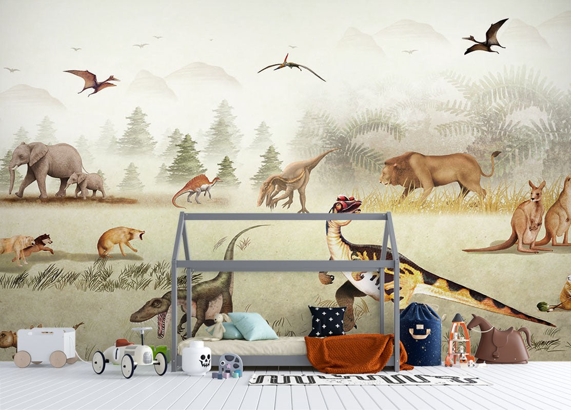 Elephant Dinosaur Kids Animal Multicolour Wallpaper Mural,Self-Adhesive Peel And Stick 3D Wall Mural,Australian Company Bedroom Wall Decor