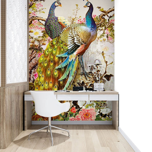 Peacock Floral Patterns Multicolour Wallpaper Mural,Self-Adhesive Peel And Stick 3D Wall Art,Removable Bedroom Wall Decor