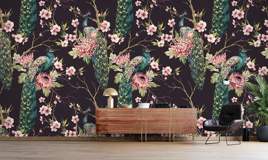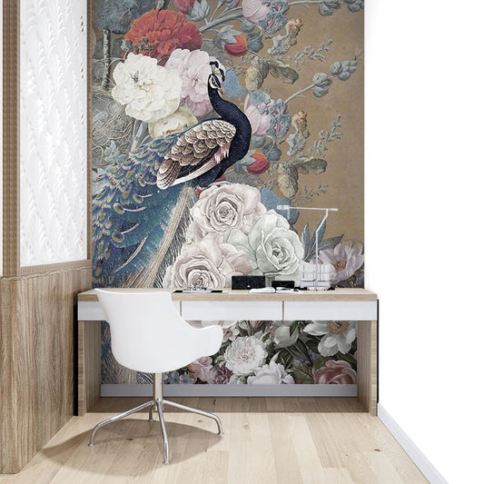 Peacock Peony Animals Multicolour Wallpaper Mural,Self-Adhesive Peel And Stick 3D Wall Decor,Australian Company Designer Wall Decor