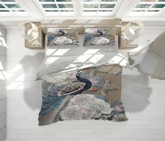 Peacock Floral Patterns Multicolour 3D Duvet Cover Set W Pillow Cover, Single Double Queen King Size, Printed Cotton Quilt Doona Cover 3 Pcs