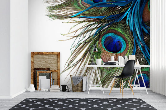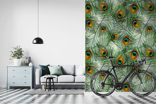 Peacock Feather Texture Feathers Green Wallpaper Mural,Self-Adhesive Peel And Stick 3D Wall Art,Designer Australian Company Wall Decor