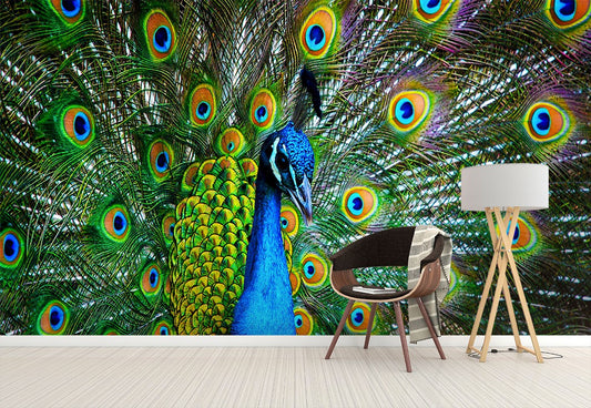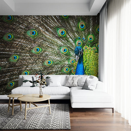 Peacock Close-Up Animals Green Wallpaper Mural,Self-Adhesive Peel And Stick 3D Wall Paper,Designer Bedroom Wall Decor