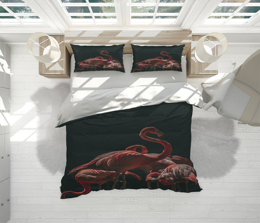 Flamingoes Animals Birds Black 3D Duvet Cover Set W Pillow Cover, Single Double Queen King Size, Printed Cotton Quilt Doona Cover 3 Pcs