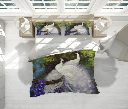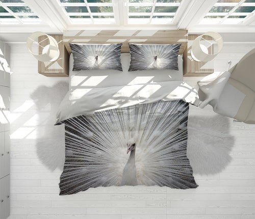 White Peacock Animals White 3D Duvet Cover Set W Pillow Cover, Single Double Queen King Size, Printed Cotton Quilt Doona Cover 3 Pcs
