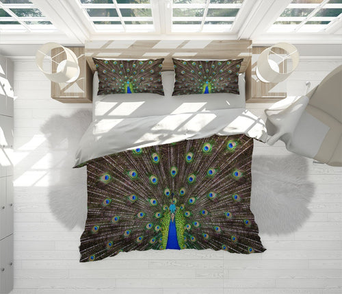 Peacock Close-Up Animals Green 3D Duvet Cover Set W Pillow Cover, Single Double Queen King Size, Printed Cotton Quilt Doona Cover 3 Pcs