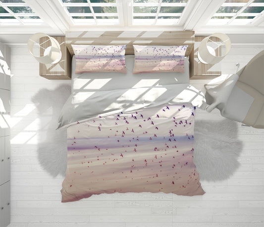 Migrating Flock Duvet Cover Set W Pillow Cover, Purple Animals Birds 3D Quilt Cover, Single Double Queen King Size Doona Cover