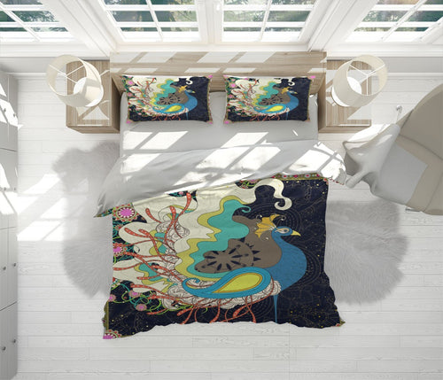 Peacock Peony Animals Multicolour 3D Duvet Cover Set W Pillow Cover, Single Double Queen King Size, Printed Cotton Quilt Doona Cover 3 Pcs