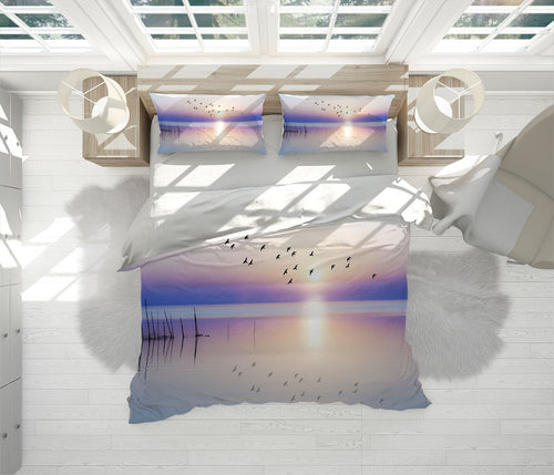 Sunset Birds Duvet Cover Set W Pillow Cover, Multicolour Beach Beach 3D Quilt Cover, Single Double Queen King Size Doona Cover