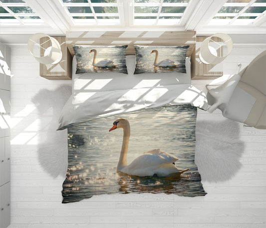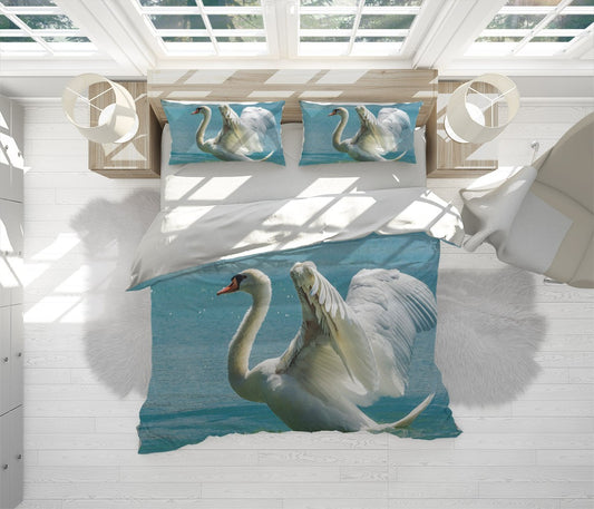 White Swan Duvet Cover Set W Pillow Cover, White Animals Birds 3D Quilt Cover, Single Double Queen King Size Doona Cover
