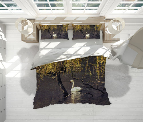 Swan Lake Duvet Cover Set W Pillow Cover, Yellow Animals Birds 3D Quilt Cover, Single Double Queen King Size Doona Cover