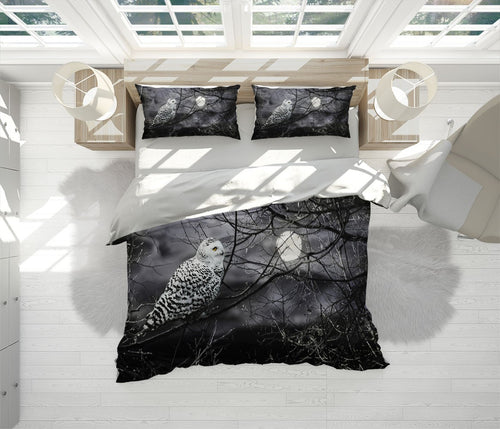 Night Owl Duvet Cover Set W Pillow Cover, Black And White Animals Birds 3D Quilt Cover, Single Double Queen King Size Doona Cover
