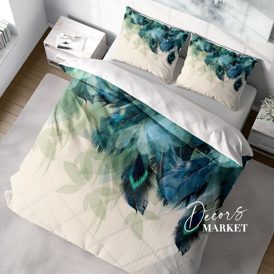 Peacock Feather Texture Feathers Green 3D Duvet Cover Set W Pillow Cover, Single Double Queen King Size, Printed Cotton Quilt Doona Cover