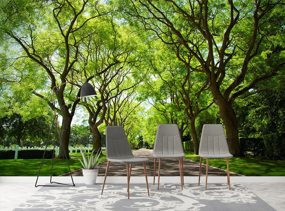 Street Trees City Streets Green Wallpaper Mural,Self-Adhesive Peel And Stick 3D Wall Art,Designer Australian Company Wall Decor