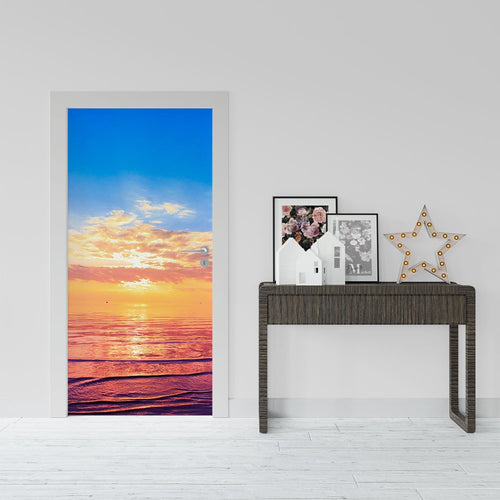 Ocean Sunset Beach Sunrise & Sunset Door Wrap, Customized Mural For Door, Door Mural Sticker, Peel And Stick Door Cover, Removable Door Decal