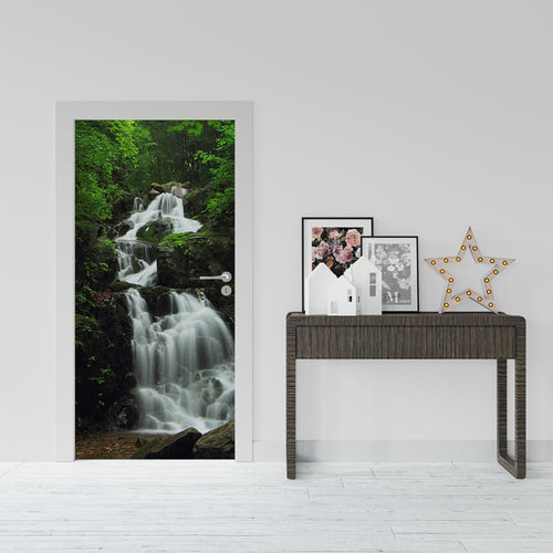 Forest Waterfall Nature Rivers & Lakes Door Wrap, Customized Mural For Door, Door Mural Sticker, Peel And Stick Door Cover, Removable Door Decal