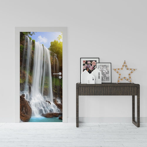 Misty Waterfall Nature Waterfall Door Wrap, Customized Mural For Door, Door Mural Sticker, Peel And Stick Door Cover, Removable Door Decal