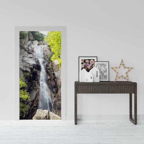 Cliff Steep Nature Waterfall Door Wrap, Customized Mural For Door, Door Mural Sticker, Peel And Stick Door Cover, Removable Door Decal