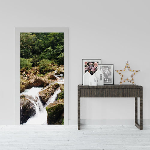 River Rocks Forest Jungle Door Wrap, Customized Mural For Door, Door Mural Sticker, Peel And Stick Door Cover, Removable Door Decal