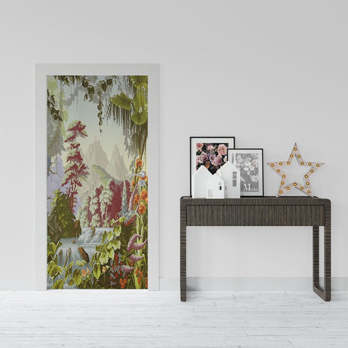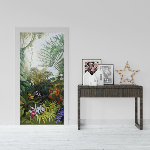 Tropical Forest Forest Jungle Door Wrap, Customized Mural For Door, Door Mural Sticker, Peel And Stick Door Cover, Removable Door Decal