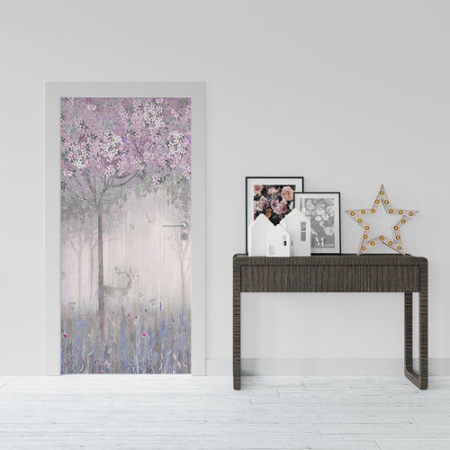 Purple Trees Kids Colorful Door Wrap, Customized Mural For Door, Door Mural Sticker, Peel And Stick Door Cover, Removable Door Decal