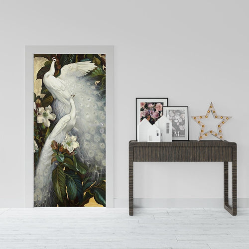 White Peacock Animals Peacock Door Wrap, Customized Mural For Door, Door Mural Sticker, Peel And Stick Door Cover, Removable Door Decal