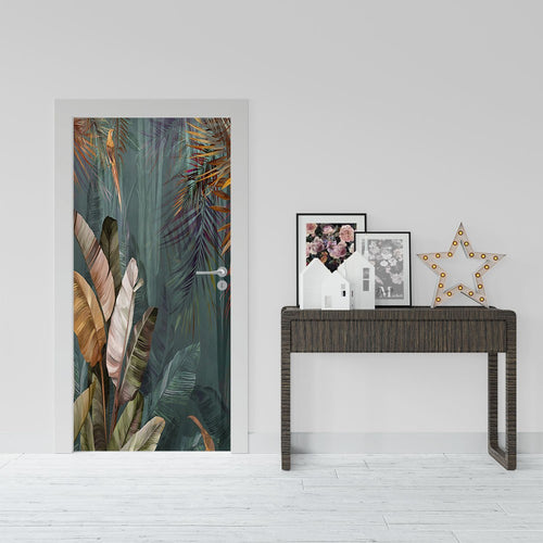 Tropical Leaves Floral Leaves Door Wrap, Customized Mural For Door, Door Mural Sticker, Peel And Stick Door Cover, Removable Door Decal