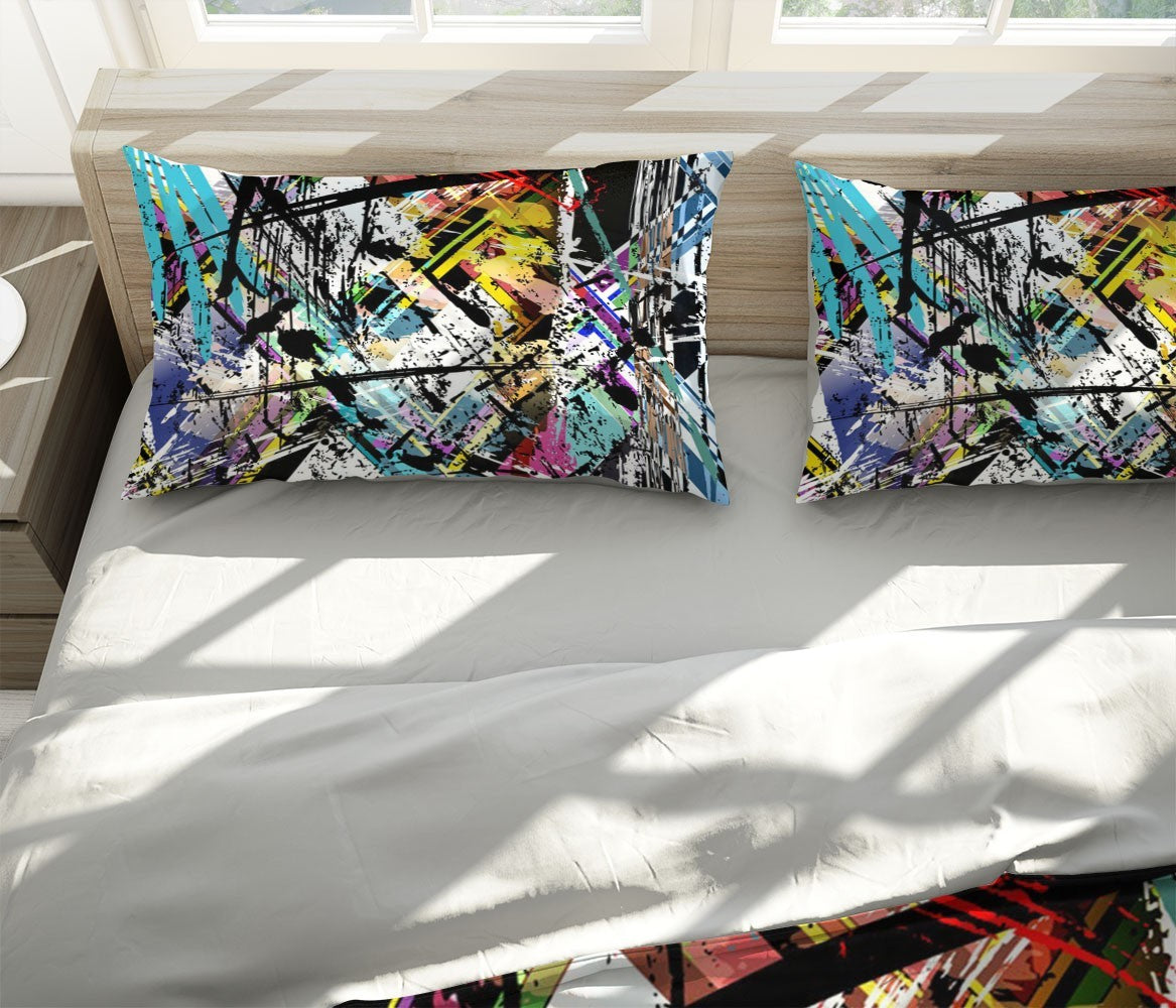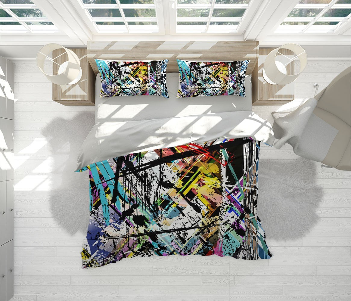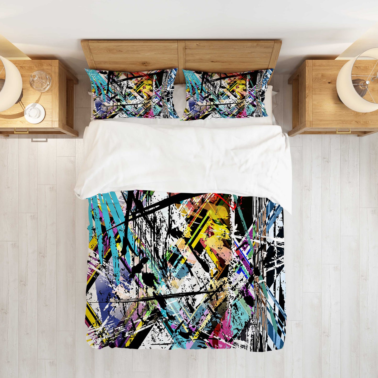 Abstract Splash Duvet Cover Set W Pillow Cover, Multicolour Graffiti Graffiti 3D Quilt Cover, Single Double Queen King Size Doona Cover