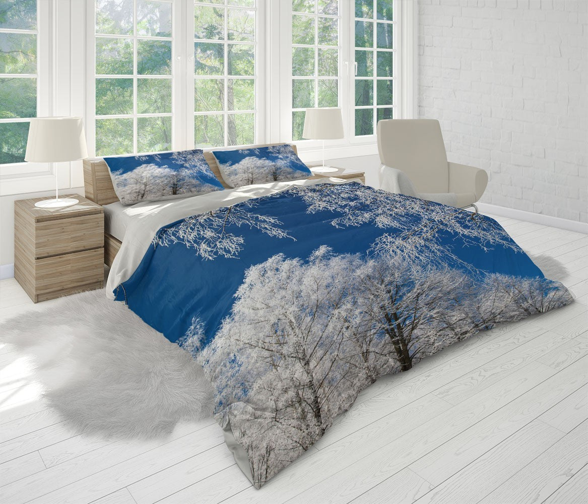 Blue Sky Duvet Cover Set W Pillow Cover, White Forest Forest 3D Quilt Cover, Single Double Queen King Size Doona Cover