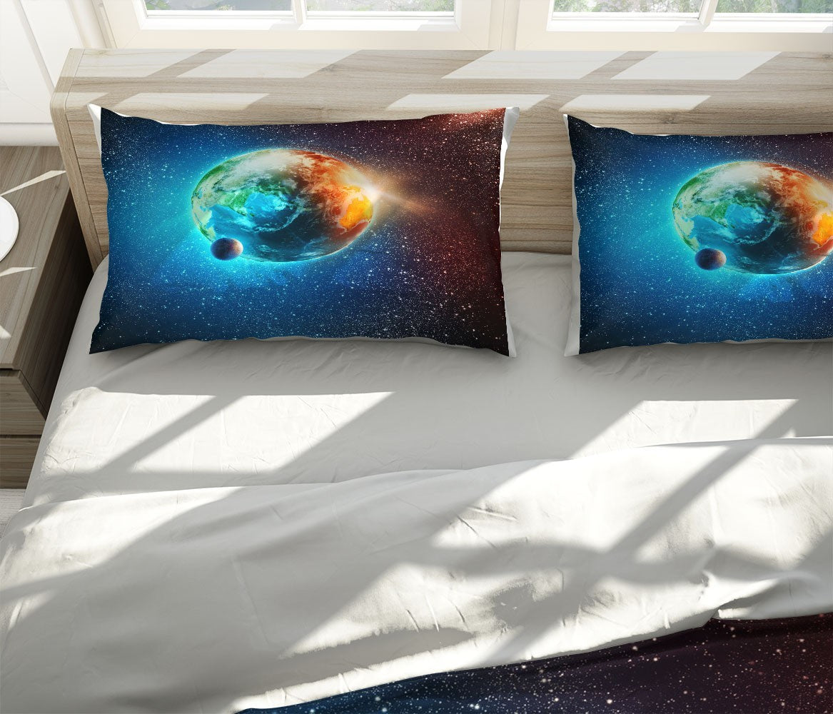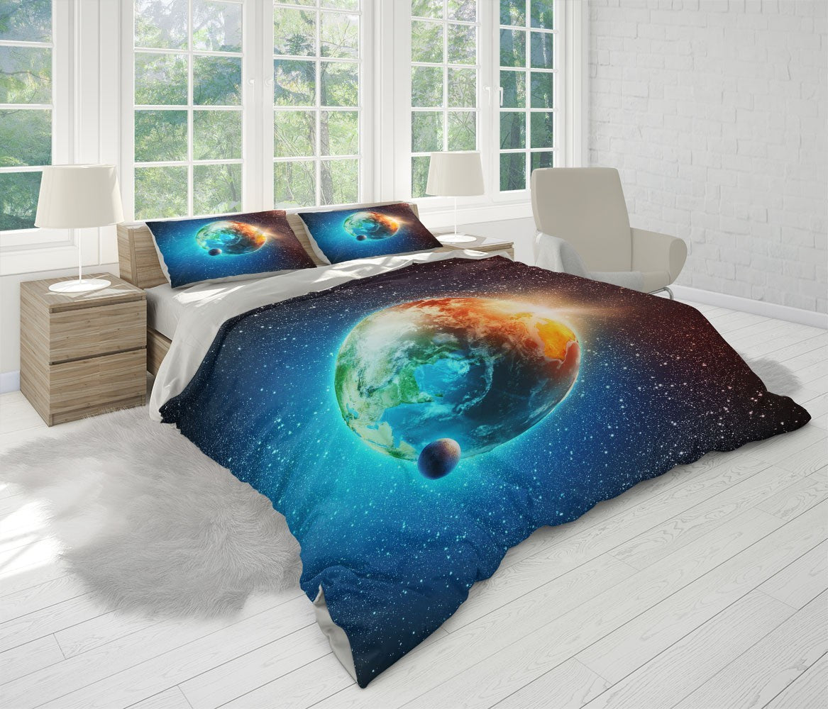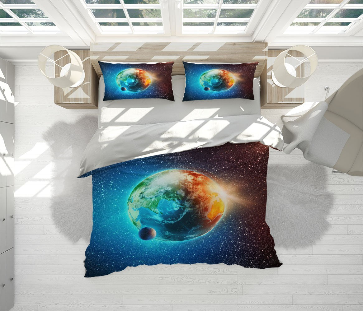 Earth Sun Moon Duvet Cover Set W Pillow Cover, Blue Nature Space 3D Quilt Cover, Single Double Queen King Size Doona Cover