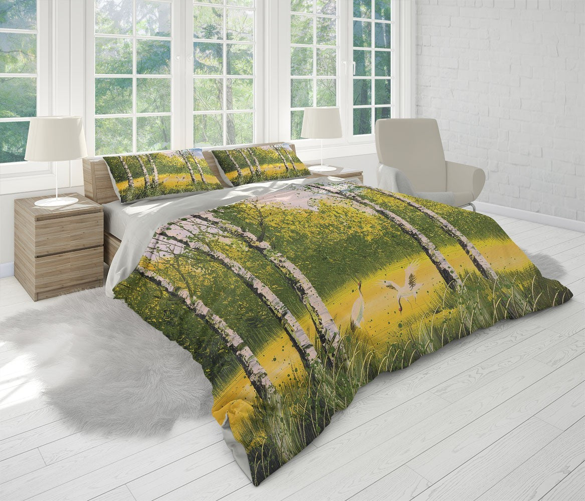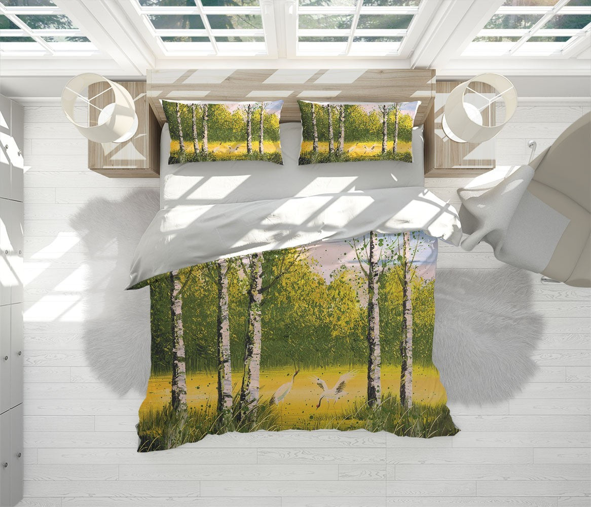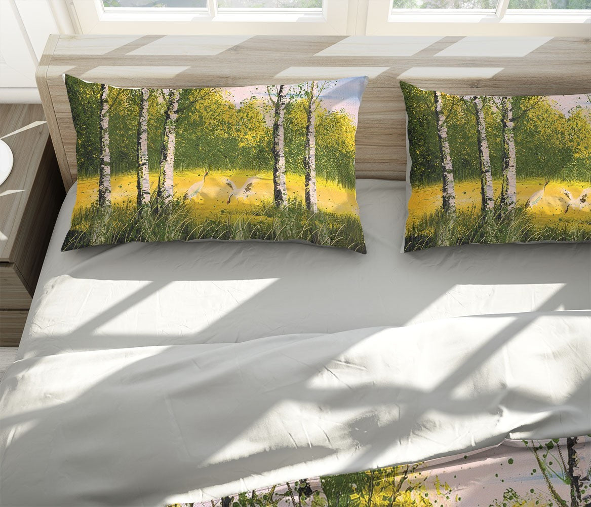 Red-Crowned Crane Duvet Cover Set W Pillow Cover, Multicolour Art Still Life 3D Quilt Cover, Single Double Queen King Size Doona Cover