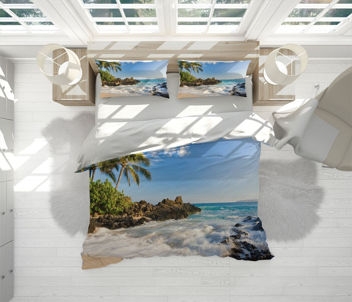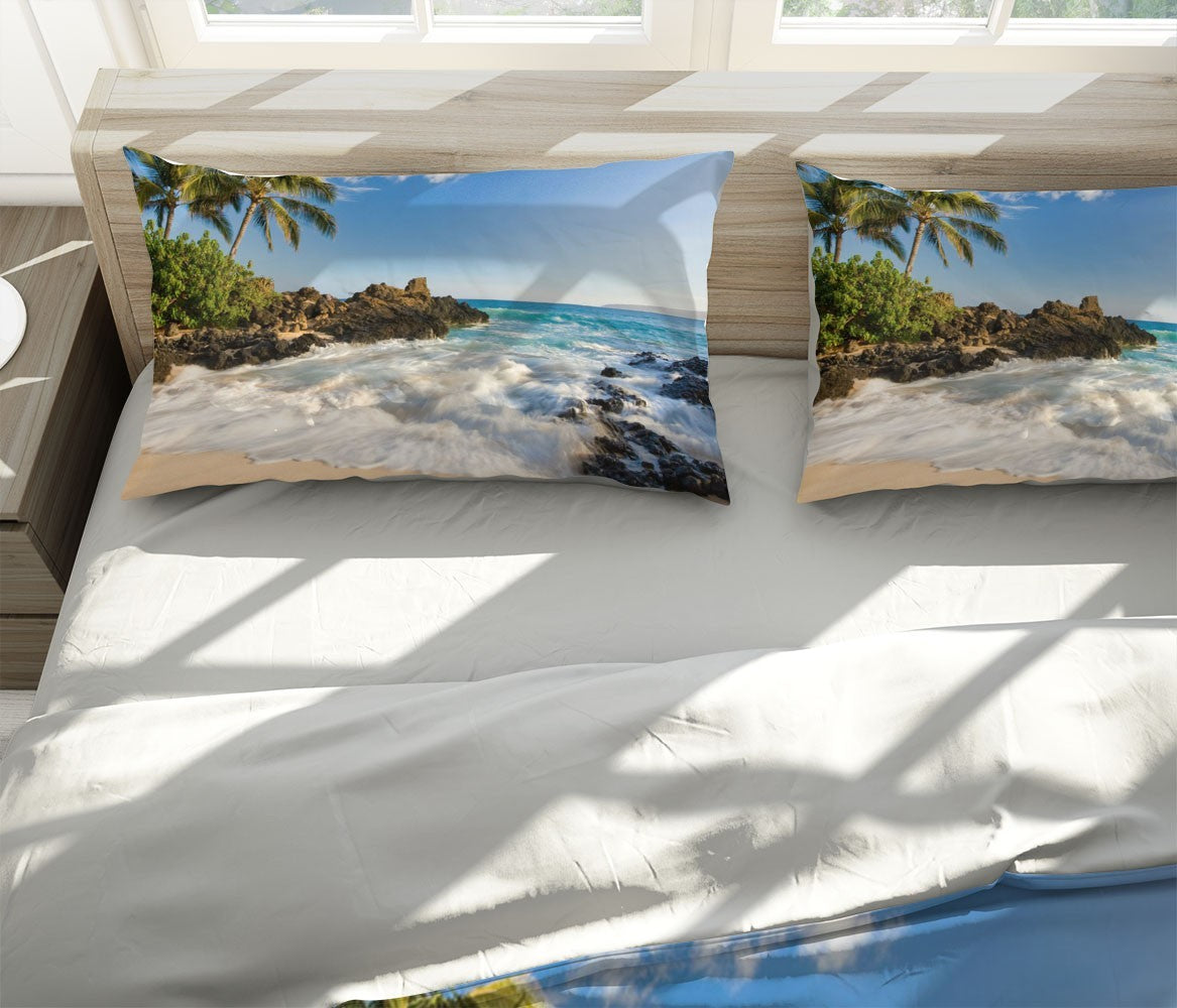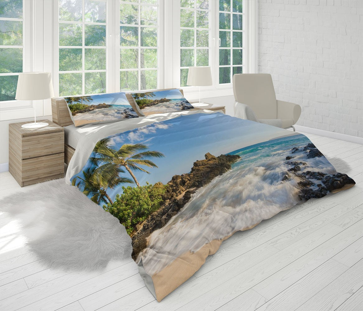 Rocky Beach Duvet Cover Set W Pillow Cover, Blue Beach Seas & Oceans 3D Quilt Cover, Single Double Queen King Size Doona Cover