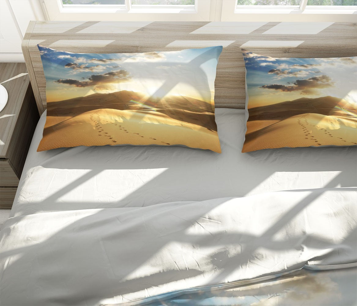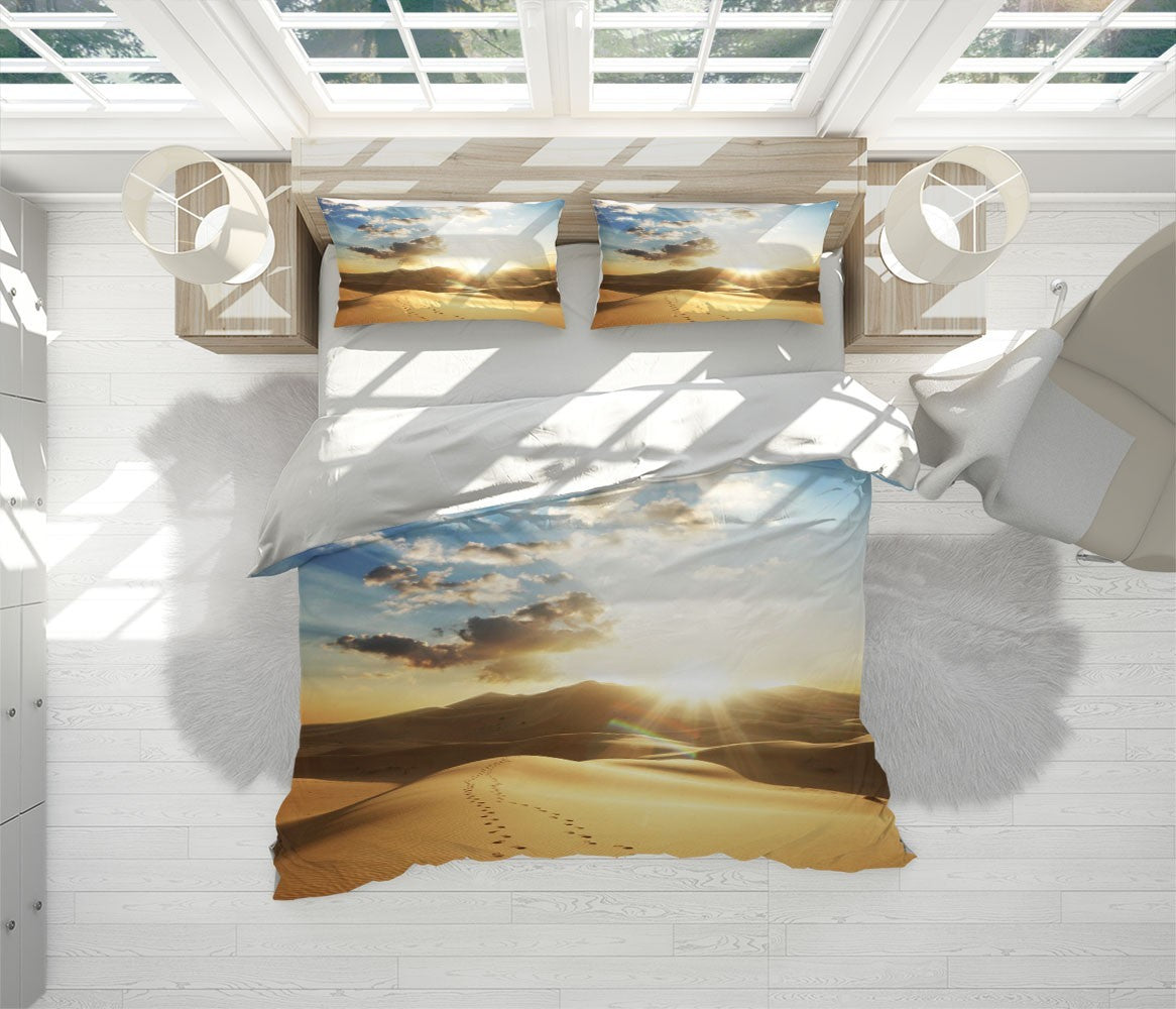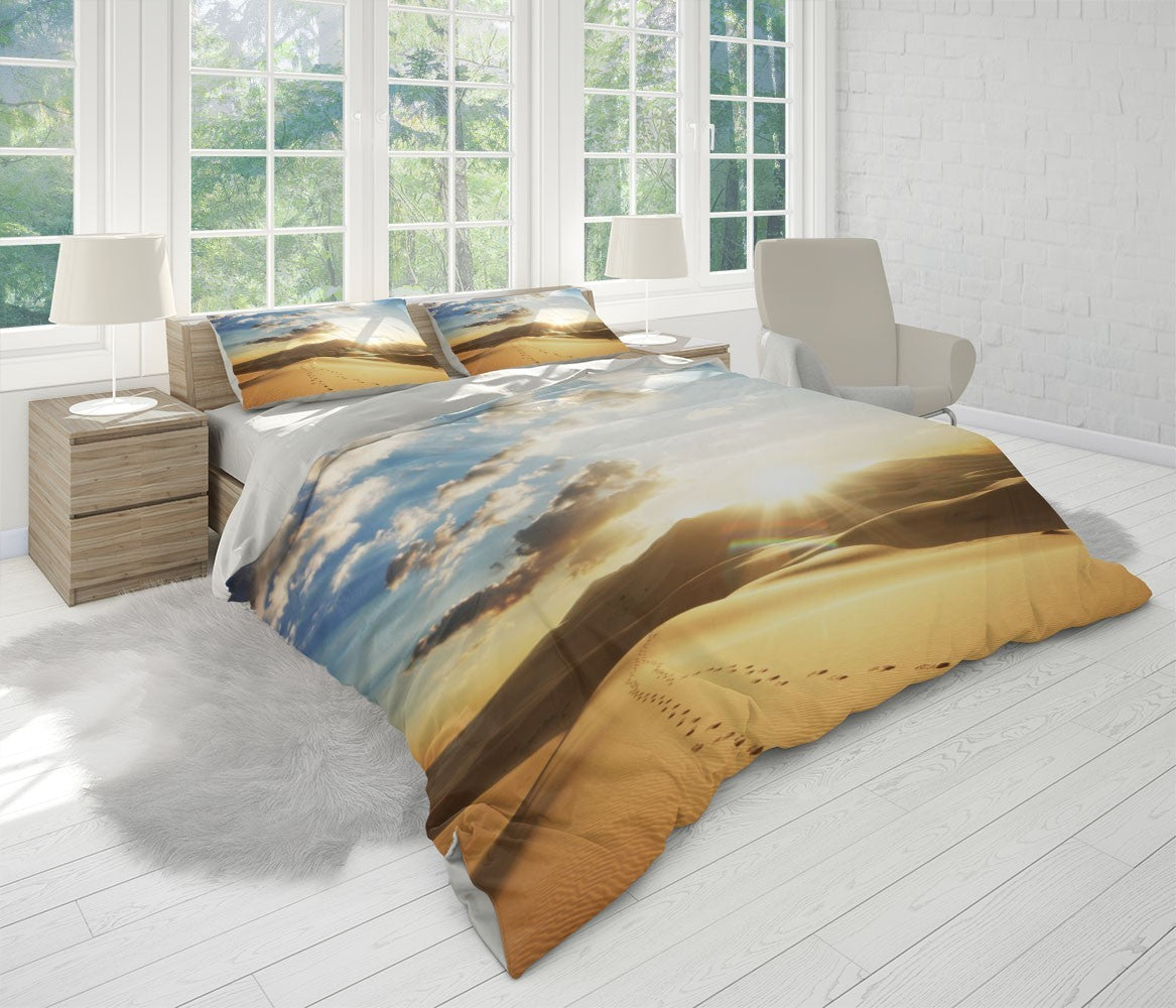 Sunshine Footprint Duvet Cover Set W Pillow Cover, Multicolour Nature Desert 3D Quilt Cover, Single Double Queen King Size Doona Cover