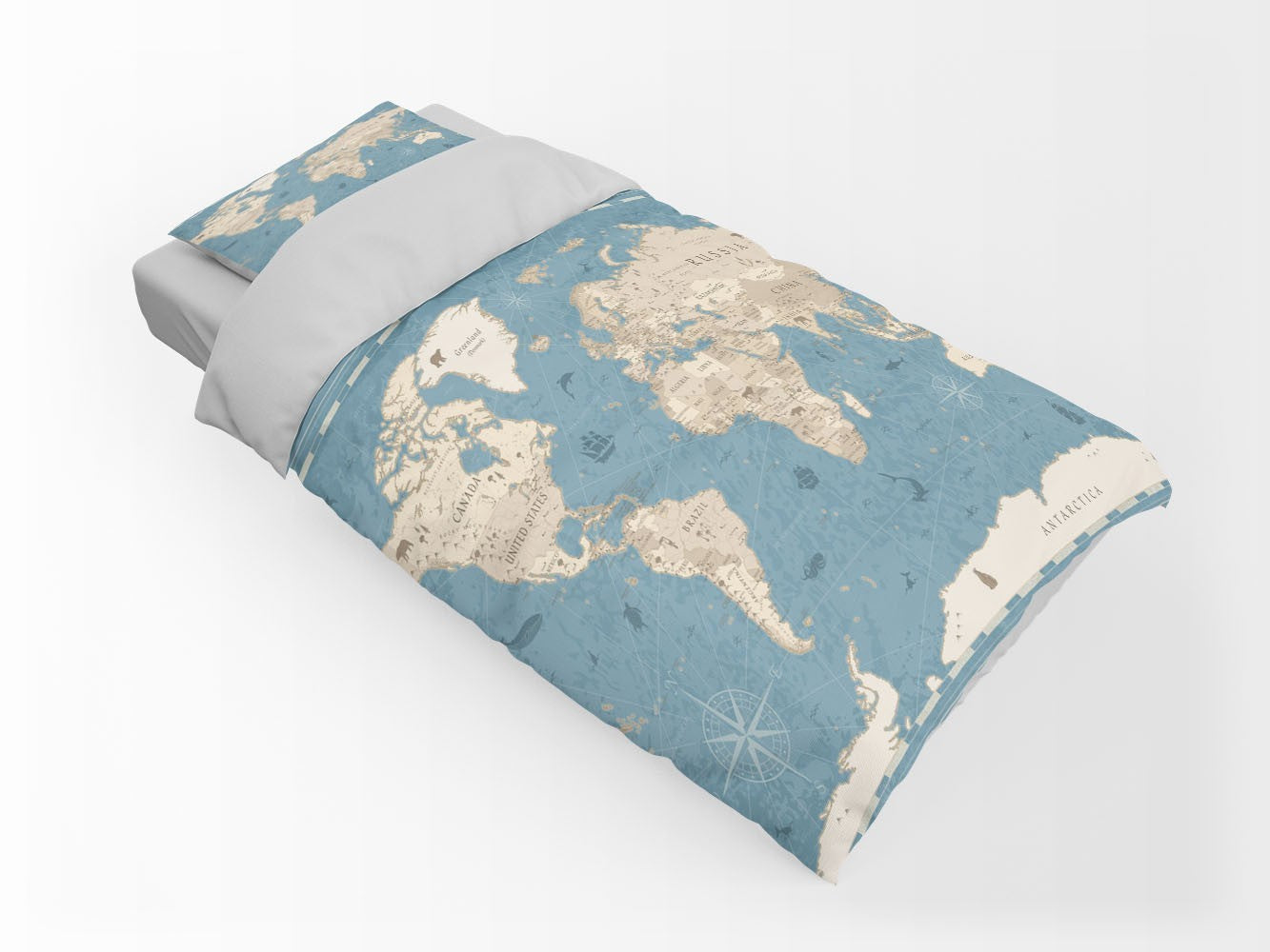 Vintage Ocean Duvet Cover Set W Pillow Cover, Blue Kids Kids Map 3D Quilt Cover, Single Double Queen King Size Doona Cover