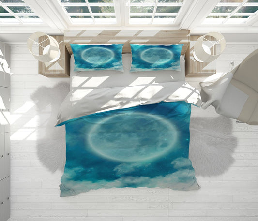 Full Moon Duvet Cover Set W Pillow Cover, Blue Nature Sky 3D Quilt Cover, Single Double Queen King Size Doona Cover