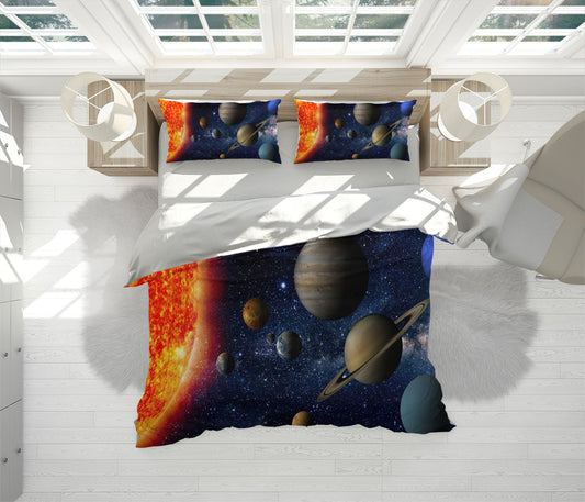 Solar System Kids Space Blue 3D Duvet Cover Set W Pillow Cover, Single Double Queen King Size, Printed Cotton Quilt Doona Cover 3 Pcs