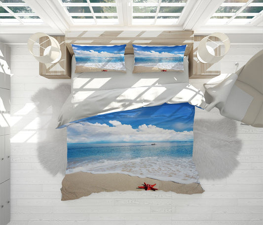Beach Starfish Blue 3D Duvet Cover Set W Pillow Cover, Single Double Queen King Size, Printed Cotton Quilt Doona Cover 3 Pcs