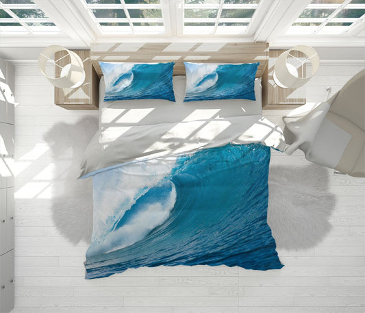 Big Wave Duvet Cover Set W Pillow Cover, Blue Beach Wave 3D Quilt Cover, Single Double Queen King Size Doona Cover