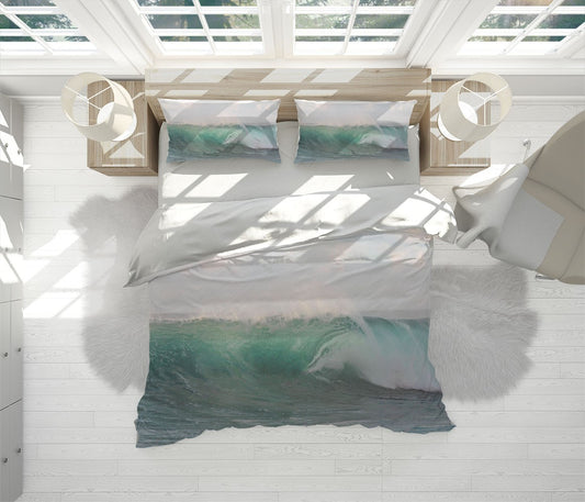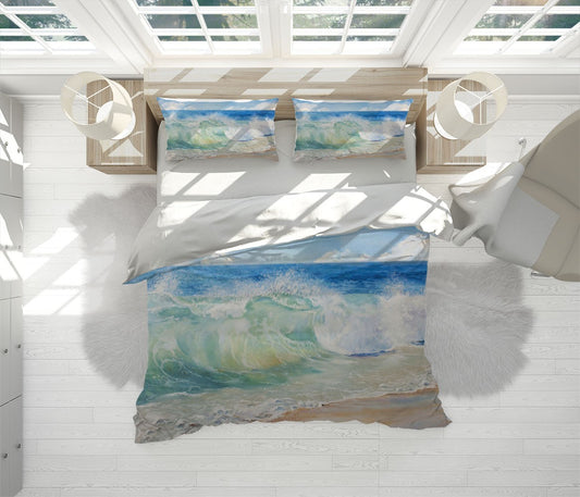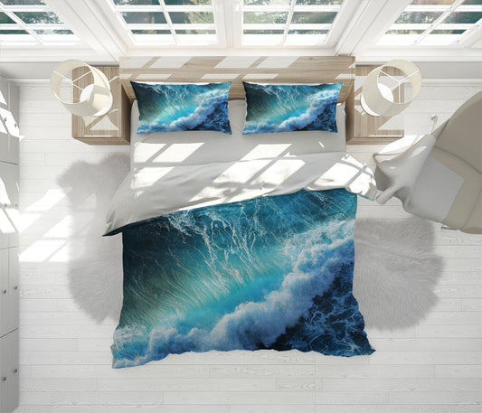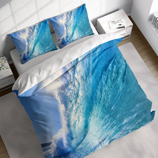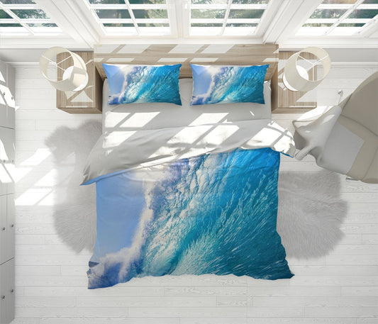 Surge Sea Duvet Cover Set W Pillow Cover, Blue Beach Wave 3D Quilt Cover, Single Double Queen King Size Doona Cover