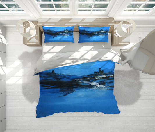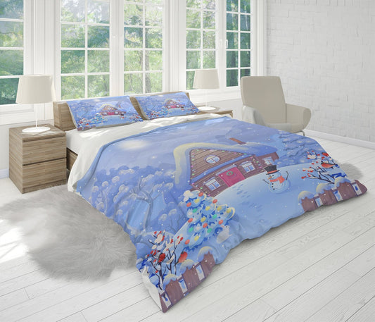 Castle Christmas Art Watercolor Blue 3D Duvet Cover Set W Pillow Cover, Single Double Queen King Size, Printed Cotton Quilt Doona Cover