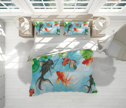 Goldfish Kids Animal Blue 3D Duvet Cover Set W Pillow Cover, Single Double Queen King Size, Printed Cotton Quilt Doona Cover 3 Pcs