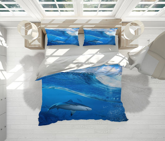 Shark Animals Sea Life Blue 3D Duvet Cover Set W Pillow Cover, Single Double Queen King Size, Printed Cotton Quilt Doona Cover 3 Pcs