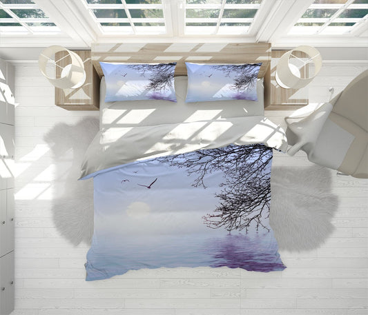 Moon Tree Duvet Cover Set W Pillow Cover, Blue Nature Natural Phenomenon 3D Quilt Cover, Single Double Queen King Size Doona Cover