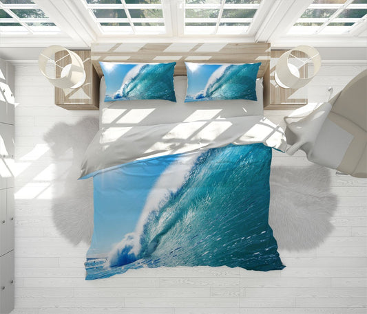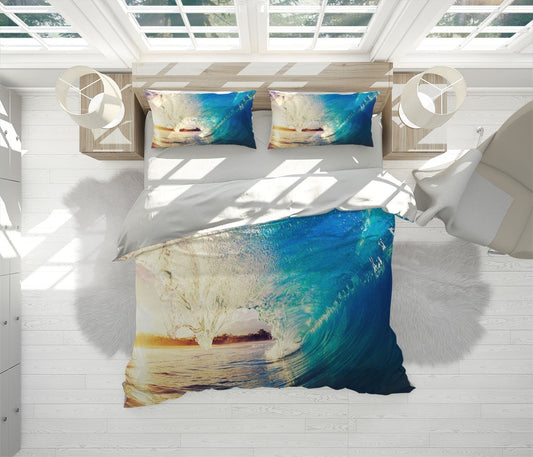 Surge Sunshine Duvet Cover Set W Pillow Cover, Blue Beach Wave 3D Quilt Cover, Single Double Queen King Size Doona Cover