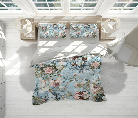 Flower Floral Flowers Blue 3D Duvet Cover Set W Pillow Cover, Single Double Queen King Size, Printed Cotton Quilt Doona Cover 3 Pcs