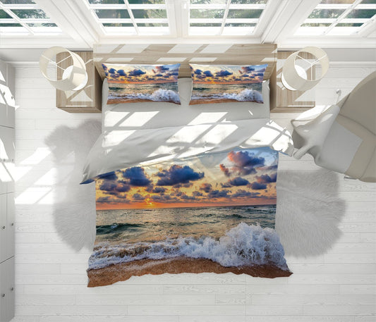 Sunset Cloud Duvet Cover Set W Pillow Cover, Blue Beach Wave 3D Quilt Cover, Single Double Queen King Size Doona Cover