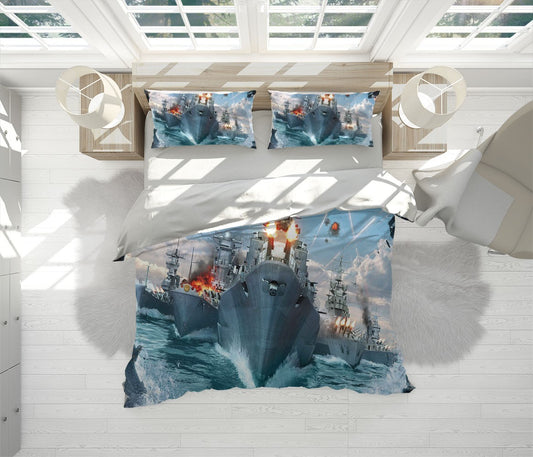 Battleships Gaming Duvet Cover Set W Pillow Cover, Blue Hobby Collections 3D Quilt Cover, Single Double Queen King Size Doona Cover